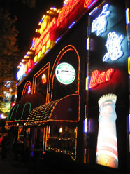衡山路はおよそ2.3Kmで、洋風の建物が多く、ゆったりとした雰囲気で、 上海の「休閑(リラックス)街」と言われています。ここには、おしゃれなBARが多く、夜になると多くの若者と外国人が集まってくる。写真は上がひるの写真、下が夜の写真ですが、全然雰囲気が違うのが見てわかると思います。