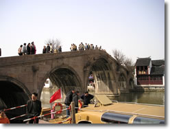 上海の西郊外「淀山湖」の湖畔にある水郷です。豫園など上海市内の観光地が金や赤など