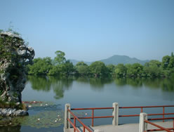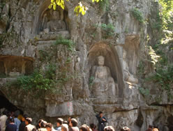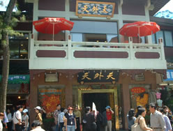 中国で、中国人に交じってツアーに参加するよさは、観光地をくまなく回れること、ただ、ガイドはほぼ中国語のみですので、多少中国語ができないと、集合時間などの情報交換が難しいかもしれません。また、ご飯も一人に一食が供給されるわけではなく、安いツアーの場合はほとんどが、みんなでくるくる回るテーブルに乱雑に並べられた中華料理をつつきあうという事になりますし、杭州の旅にも関わらず、伝統的な杭州料理は食べれません。今回の杭州の旅でも、中国の人たちと皿を(それもどこにでもある中華料理です)つつきあうのがいやだったので、夜ホテルに戻ってからは、街に繰り出し、夕食を食べました。タクシーの運転手に「杭州で伝統的な杭州料理が食べれる所はどこですか?」と聞いた所、「天外天」と「楼外楼」の2つを教えてくれました。楼外楼は西湖の側に、天外天は山の奥、観光地で有名なお寺の側にあります。 |