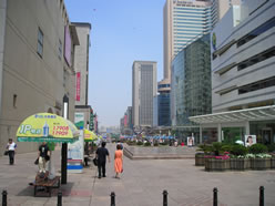「青泥窪街」は駅前の商業地でマイカルを始め、地下商城の韓国服飾市場や多くの百貨店が建ち並びます。他にも最近開発が進んでいる「西安路」のパークソン(百盛)やカルフール、大連の南京路と言われる「天津街」にも多くの百貨店が並んでいます。